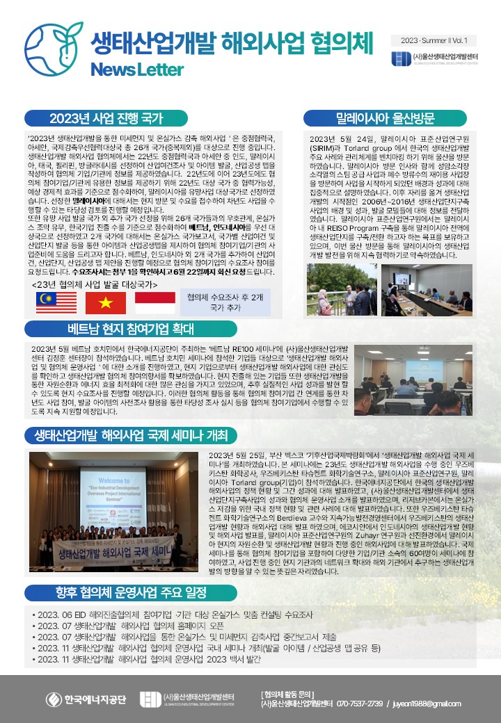 [뉴스레터] 생태산업개발 해외사업 협의체_News Letter_Vol.1